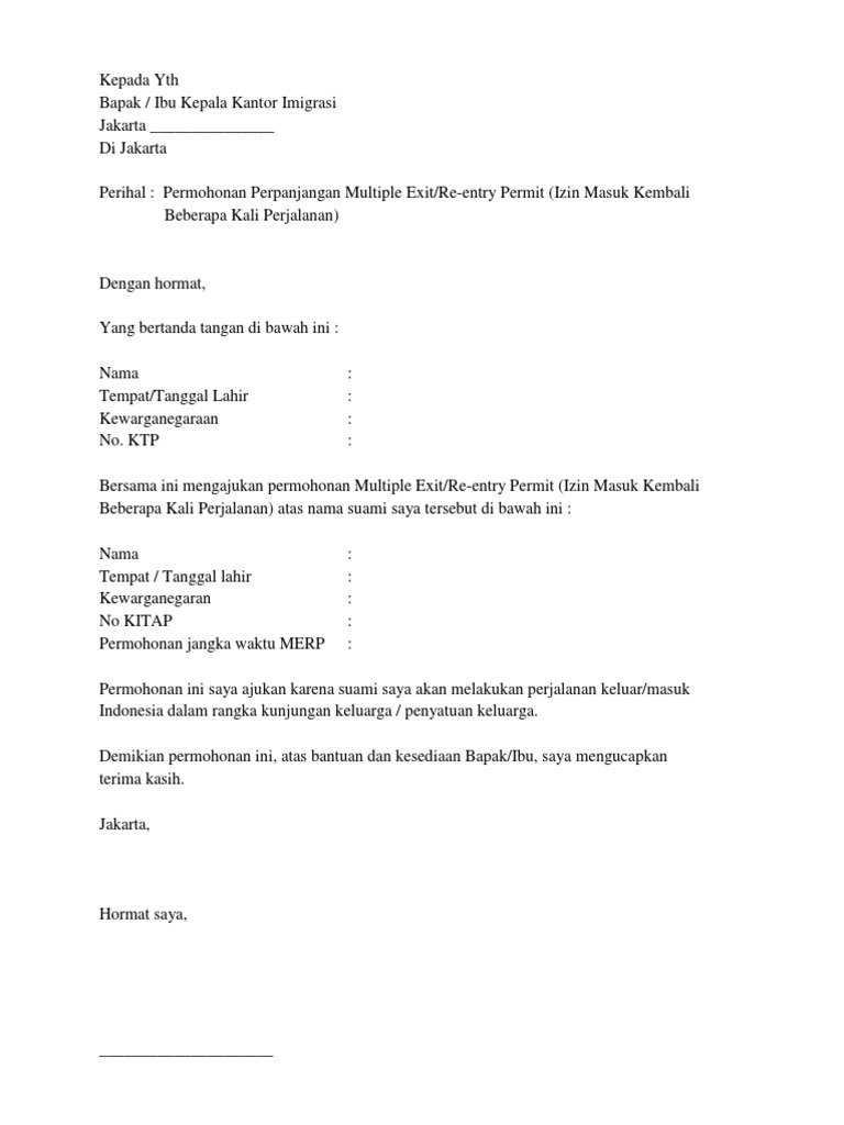 contoh surat mohon ermit